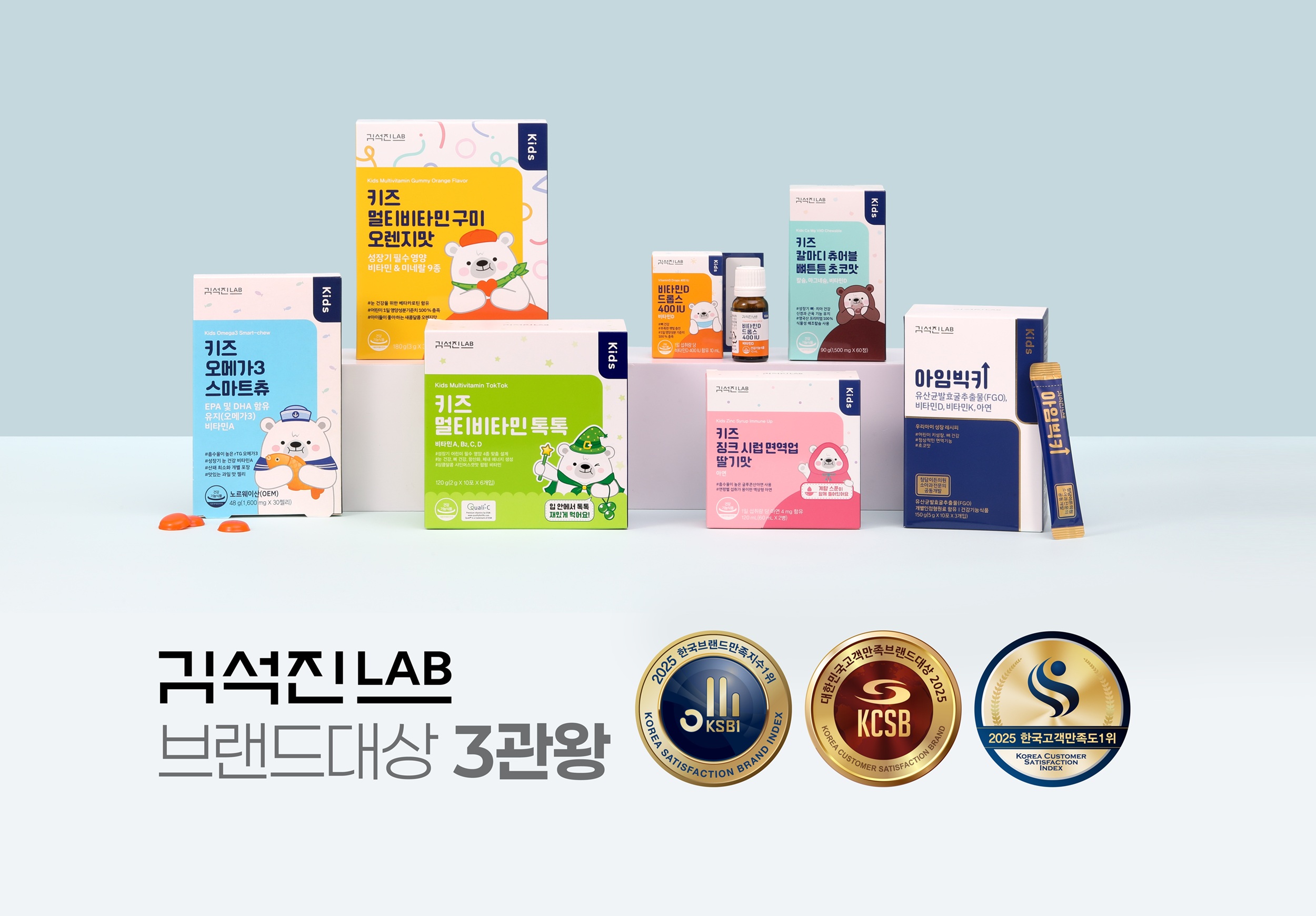 헥토헬스케어의 어린이 맞춤형 건강기능식품 브랜드 김석진LAB(랩)이 ‘2025 대한민국 고객만족 브랜드대상’ 영유아 영양제 부문 대상을 수상하며, 브랜드 가치를 공식 인정받는 대표 어워즈에서 3관왕을 달성했다. 이는 성장기 어린이의 발달에 꼭 필요한 영양소를 기반으로 한 제품 개발과 전문성 있는 브랜드 철학이 소비자들의 신뢰를 얻은 결과다.